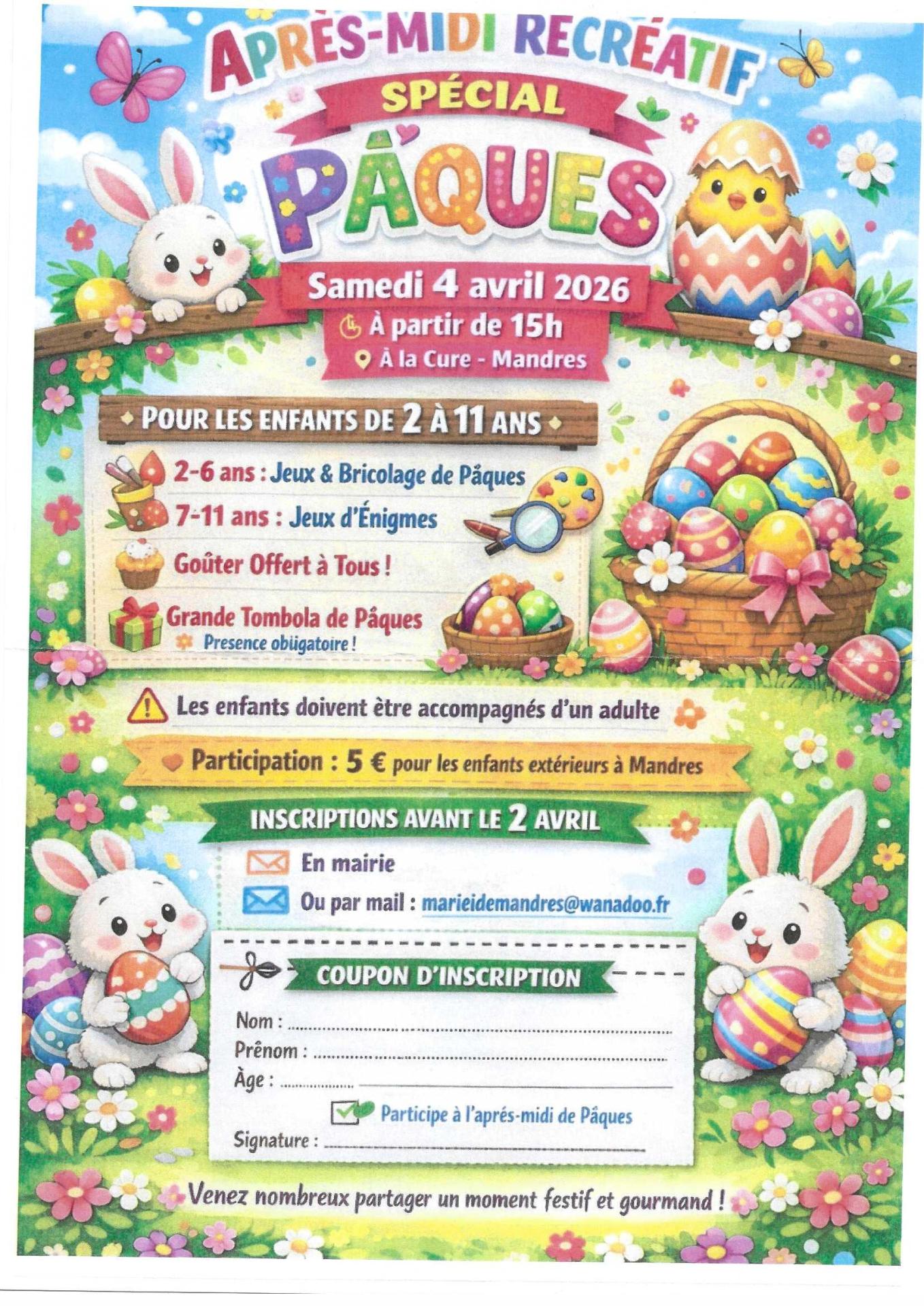 salle de la Cure - MANDRES LA COTE 5€ pour les enfants extérieurs à Mandres